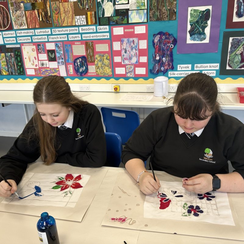 At Weston Secondary School, our vision is to develop creative, confident and technically skilled young designers who can communicate ideas visually through textiles and mixed media. Textiles encourage students to explore materials, techniques, processes and cultural influences while building resilience, independence and pride in their practical work. Through hands-on making, thoughtful experimentation and reflective practice, learners gain a deep appreciation for how textiles contribute to art, design, technology, identity and the wider creative industries.